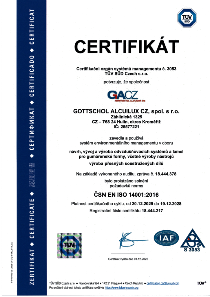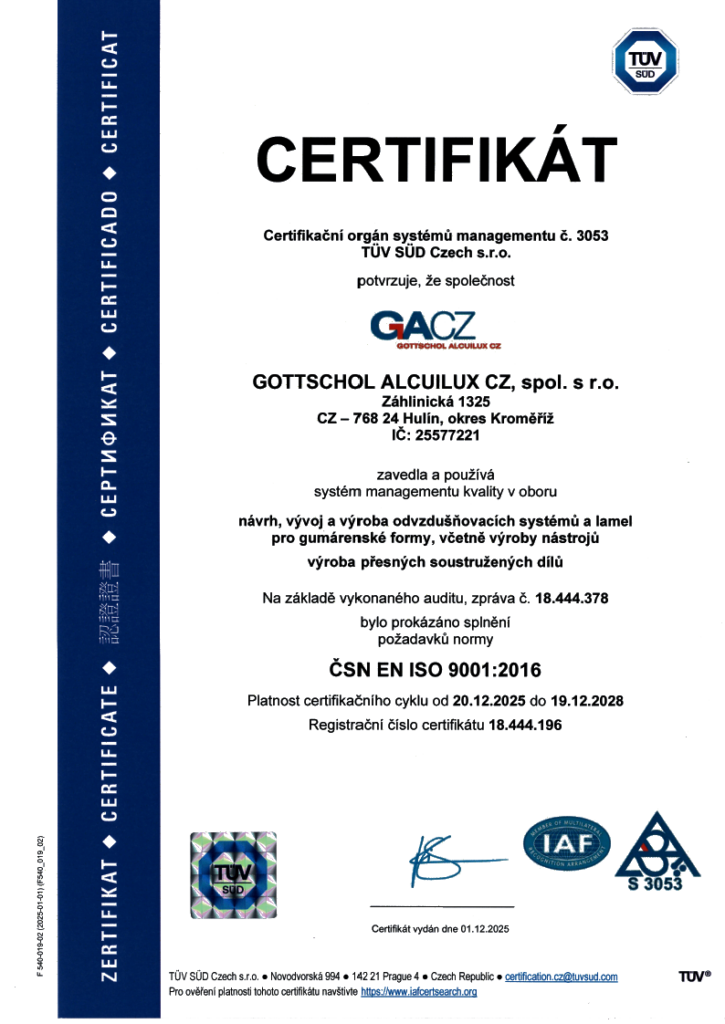 Komponenty pro formy pneumatik