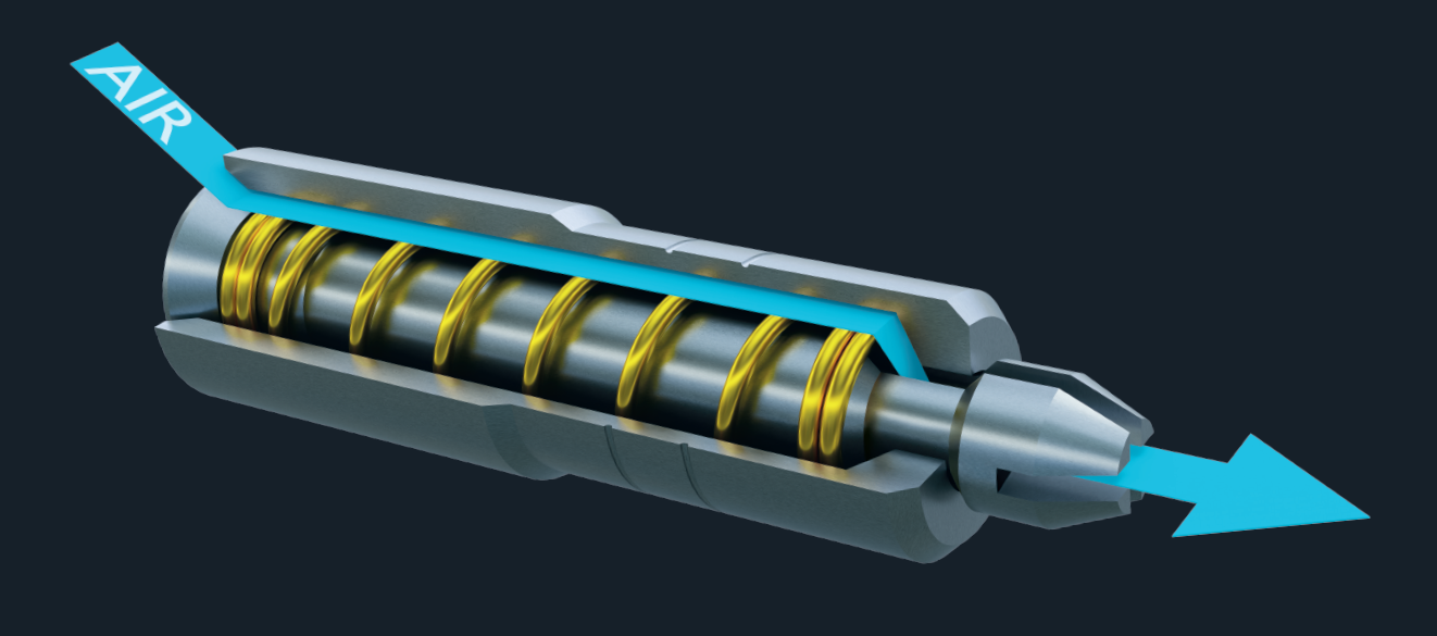 Pružinový ventil zajišťuje bezpřetokové odvzdušnění formy při lisování pneumatik. Pneumatika je hladká, bez přetoků, již při vyjmutí z lisu. Ventily tak zabraňují vzniku odpadu, který by se jinak musel následnou operací po lisování odstranit ve výrobě. Naše ventily zároveň snižují spotřebu gumárenské směsi a přináší tak ekonomické úspory výrobcům. Ze své podstaty jsou šetrné k životnímu prostředí.