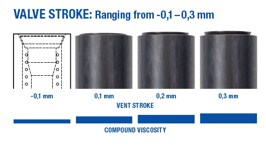 V závislosti na viskozitě gumárenské směsi, přizpůsobujeme výšku zdvihu ventilu.