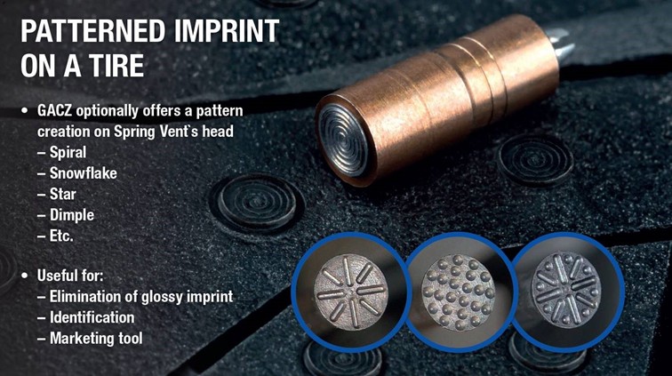 Vyvinuli jsme unikátní výrobek, pružinový ventil, na odvzdušnění dutiny formy při lisování pneumatik. Vlastníme několik patentů. Produkt dále vyvíjíme a přizpůsobujeme individuálním potřebám každého zákazníka. Zákazníkům nabízíme naše know-how a pomoc s hledáním a odstraňováním příčin problémů.